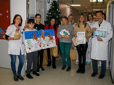 Les dessins réalisés par les élèves ont été remis aujourd'hui, en début d'après-midi, au sein du service de Pédiatrie du CHU de Nîmes. Madame Lacroix, accompagnée de Madame Gallet, référente RH de Fournès, et de Madame Delwoum, agent périscolaire, étaient présentes pour l'occasion.