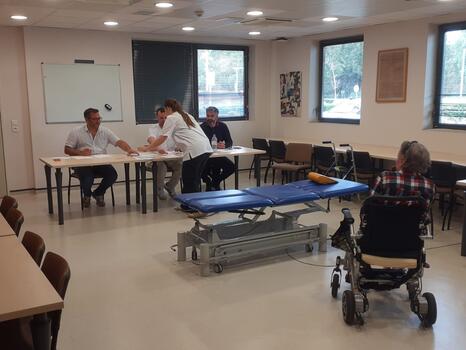 Les étudiants ont été préparés dans une salle dédiée où ils doivent réaliser un examen clinique complet. Ils ont eu à leur disposition tous les éléments nécessaires pour effectuer une synthèse du dossier médical, une anamnèse détaillée et un bilan locomoteur. Ces étapes sont essentielles pour évaluer leur capacité à analyser et à traiter les besoins des patients. Une fois ces tâches accomplies, les étudiants seront évalués par des professionnels de santé, garantissant ainsi une évaluation rigoureuse et complète.
