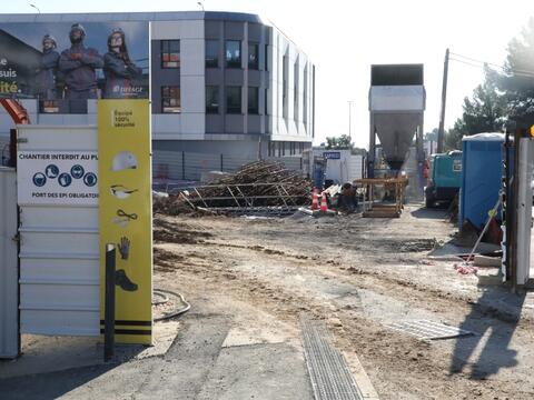 Les travaux de terrassement sont actuellement à leur apogée. Des pelleteuses creusent profondément le sol, préparant le sol pour la phase de construction.