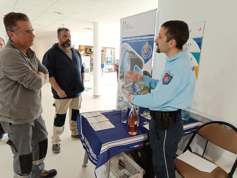Le Capitaine Olivier Galon, Commandant l'Escadron Départemental de Sécurité Routière du Gard, s'est rendu disponible toute la journée ce mercredi 8 janvier afin d'attirer l'attention des patients et des professionnels de santé du CHU de Nîmes sur les dangers de la vitesse, de l'alcool, des substances illicites et notamment le protoxyde d'azote.