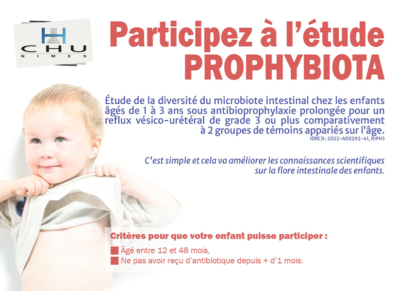 L’objectif de l’étude PROPHYBIOTA est de comparer la diversité du microbiote intestinal entre les enfants sous antibioprophylaxie prolongée ou non.