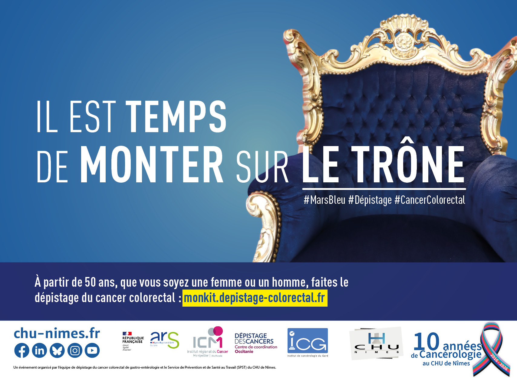 À l’occasion des 10 ans de la Cancérologie au CHU de Nîmes, en collaboration avec l’Espace Rencontres Information, le mois de mars met à l’honneur la sensibilisation au cancer colorectal.
