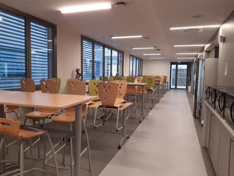 L’espace de vie étudiante bénéficie d’un espace détente et restauration, d'un Centre de documentation équipé de 4 postes informatiques , espace lecture ainsi que 4 salles de travail en petit groupe.