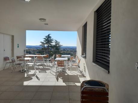 Le bâtiment est ouvert sur plusieurs terrasses.