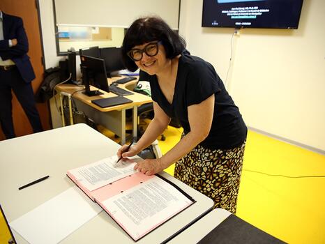 Anissa Megzari, Directrice de la Recherche, des Partenariats Hospitalo-universitaires et Internationaux du CHU de Nîmes, a par la suite signé la lettre d’engagement qui ouvre donc une nouvelle ère pour l’imagerie médicale nîmoise à travers ce nouveau partenariat.