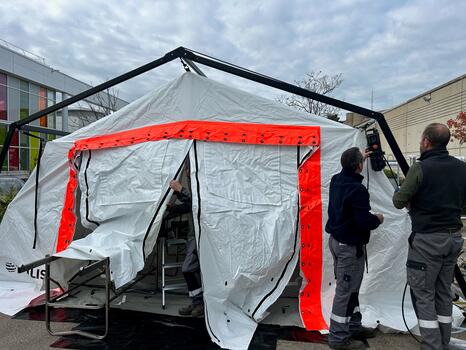 Sous la supervision du groupe des Situations sanitaires exceptionnelles (SSE), dirigé par le Docteur Margaux Chabannon et Thibaut Story (cadre de santé), l'infrastructure a été montée et démontée en un temps record. Cette simulation a impliqué la mise en place de la structure, de ses circuits hydrauliques, des groupes électrogènes, et du système de chauffage intérieur.