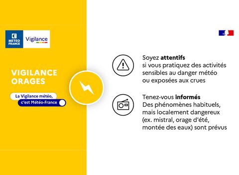 Météo France a placé le département du Gard en vigilance jaune pour risque d’orages. ⚠️ Soyez prudents dans vos déplacements et tenez-vous informés de l’évolution de la situation.