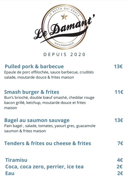 - Le Damant' Foodtruck - Parvis de Carémeau (Entrée principale) - réservations au 07 86 82 53 33 - Le Damant Foodtruck carte
