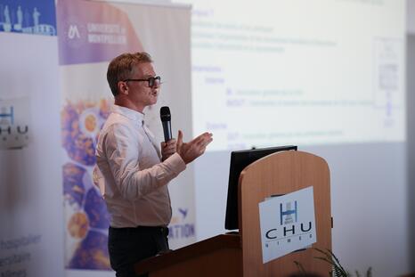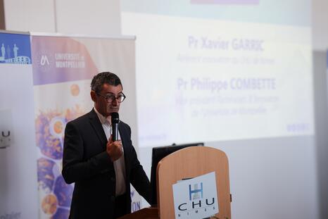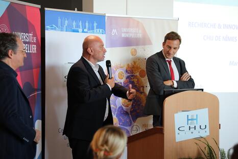 Aux côtés de Philippe Augé, président de l’Université de Montpellier, de Frédéric Rimattei, directeur général du CHU de Nîmes, et de Michel Prudhomme, président de la Commission médicale d’établissement, la rencontre s’est déroulée en présence de Véronique Dominguez-Guillaume, rectrice déléguée pour l’enseignement supérieur, la recherche et l’innovation en Occitanie.