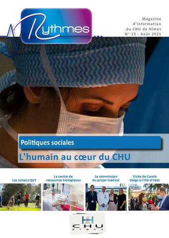 Rythmes N°14 Décembre 2021 Publié le 16.09.24 Rythmes n.14 pdf - 1.43 Mo Lire la publication À lire aussi Rythmes N°13 – Août 2021 Politiques sociales – L'humain au cœur du CHU Rythmes n.13 pdf - 2.19 Mo Lire la publication Rythmes N°12 – Janvier 2021 Édition spéciale COVID-19 2e vague Situation exceptionnelle - Le CHU dans la crise Rythmes n.12 pdf - 2.35 Mo Lire la publication