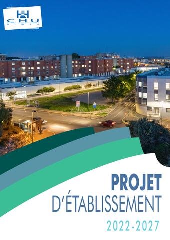 Projet établissement Publié le 16.10.24 Projet établissement pdf - 3.94 Mo Lire la publication À lire aussi Projet d'établissement 2022-2027 La lecture du projet d’établissement 2017-2022 montre l’importance de ce document stratégique pour un CHU comme celui de Nîmes. Il… Projet d'établissement 2022/2027 pdf - 3.11 Mo Lire la publication